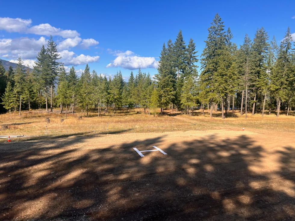 Jim: going to level out the meadow and he already dropped a tree that hindered the recent helicopter landing, and is going to put in an H to make it easier to see. SEE BELOW FOR FINISHED PAD.